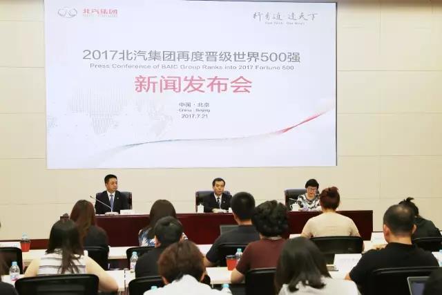 7月21日下午,北汽集团召开了“2017北汽集团再度晋级世界500强新闻发布会”,《财富》世界500强排行榜中国区代表张丹女士现场宣布了北汽集团排名第137位。北汽集团总经理张夕勇先生介绍了北汽集团的发展情况并回答了媒体的提问。国内外数十家主流媒体、北汽集团总部相关部室及主要成员单位的负责人共同出席了新闻发布会。