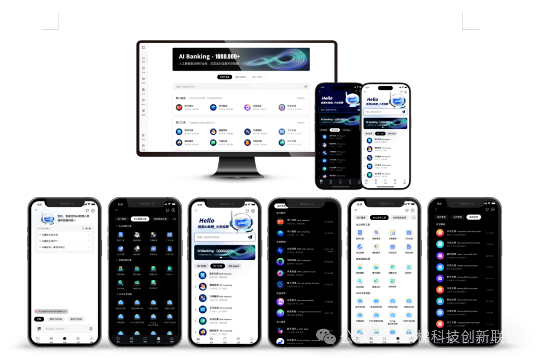AIB平台以“大模型+小模型+场景化工具”的融合架构为基础,构建了覆盖“决策支持-业务赋能-客户服务”全链条的智能化服务体系。搭建基础模型应用平台、重点行业模型平台、全行知识管理平台、金融场景应用平台、办公智能助理平台,对接DeepSeek、通义千问等7种行业先进大模型,形成“智能应用矩阵、效率工具集群、创作助手生态”三位一体的功能架构。