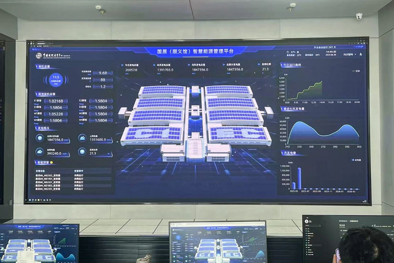 在中国国际展览中心的屋顶,一场“阳光变能源”的革命正在上演。综能公司充分利用屋面资源,在8个展馆屋顶建设大型分布式光伏项目,装机容量达11.5兆瓦。10万平方米的光伏矩阵将阳光转化为清洁能源,预计展会期间可提供25万千瓦时绿电,为链博会注入源源不断的绿色动能。