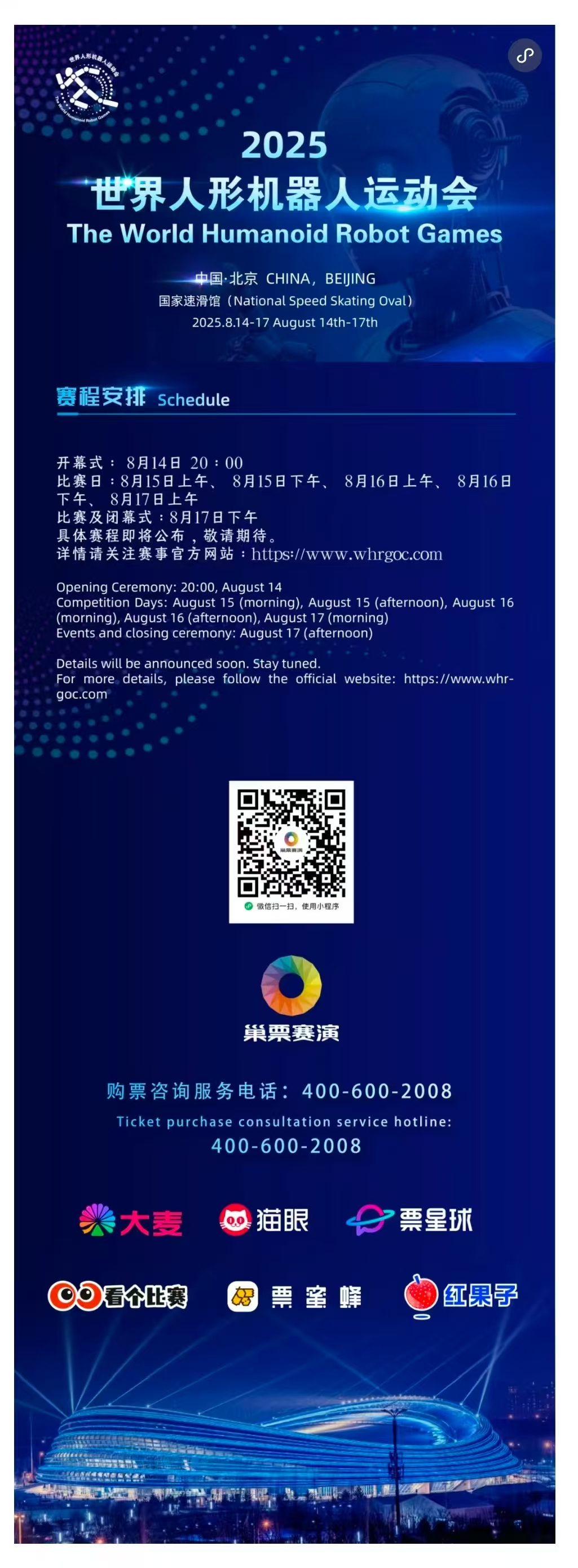 由北京市人民政府、中央广播电视总台、世界机器人合作组织、亚太机器人世界杯国际理事会联合主办的2025世界人形机器人运动会开赛在即,国资公司作为赛事承办方、全球合作伙伴,携旗下北奥集团、国家速滑馆、国家体育场全力开展各项筹备工作,推动比赛场地和实训基地的建设改造与功能完善,精心筹划票务方案,确保赛事成功举办。目前,首批外国参赛队进驻国家速滑馆机器人实训基地,观赛门票将于近期通过各票务平台开票。