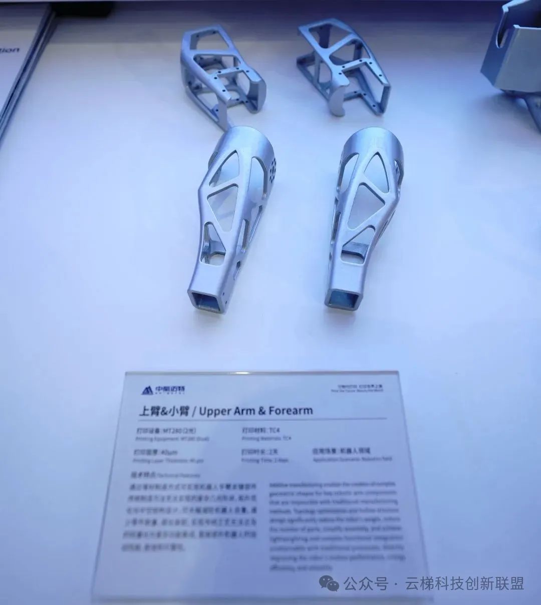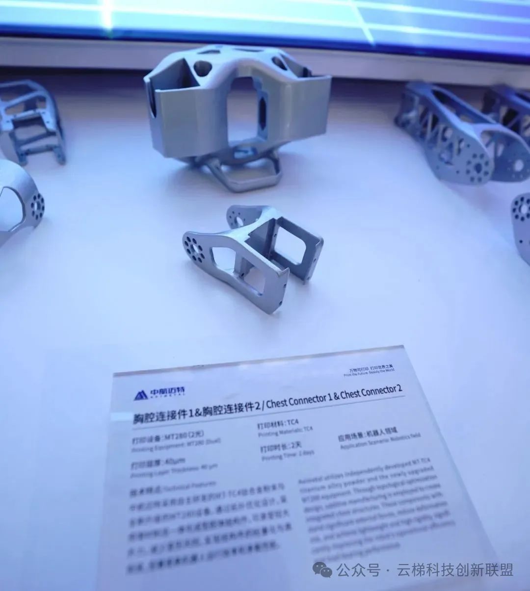 比如,人形机器人的胸腔连接件,使用中航迈特自主研发的钛合金粉末及金属3D打印设备进行打印制作,能够承受较大外力,减少变形风险,实现结构件轻量化与高刚度,极大提升人形机器人的运行效率和承载能力。