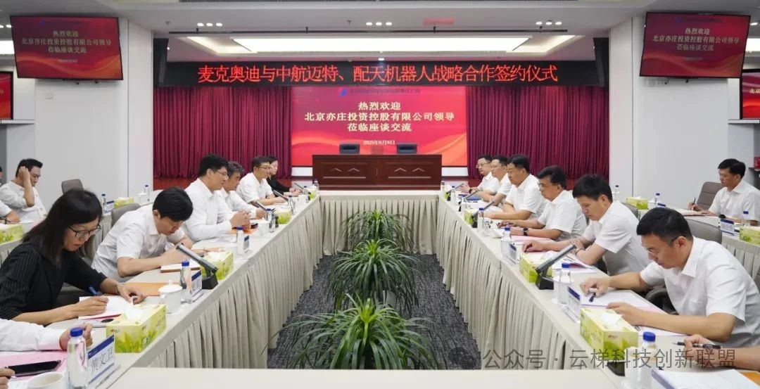 8月8日,京城机电所属中航迈特、配天机器人与亦庄控股所属麦克奥迪实业集团有限公司举行战略合作协议签约仪式。京城机电党委书记、董事长阮忠奎,党委副书记、总经理李忠波;亦庄控股党委书记、董事长,经开区工委副书记(兼)王军,亦庄控股总经理杨文良等参加签约仪式。中航迈特总经理高正江、配天机器人总经理索利洋分别与麦克奥迪党委书记、总经理廖显胜签署合作协议。