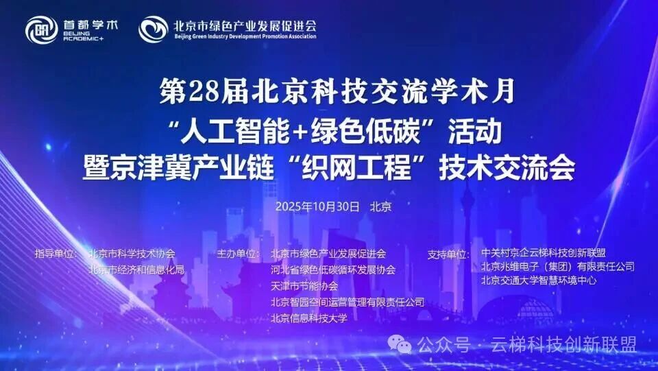 10月30日,第28届北京科技交流学术月重点活动——人工智能+绿色低碳”活动暨京津冀产业链“织网工程”技术交流会在兆维工业园成功举办。中关村京企云梯科技创新联盟(简称:云梯联盟)作为支持单位参与。